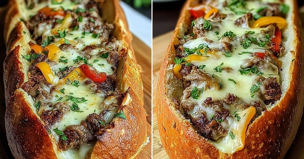 2) Easy Cheesesteak-Stuffed Garlic Loaf Recipe