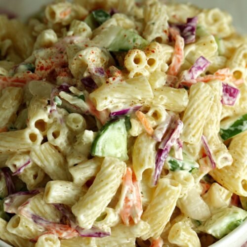 If you’ve got a busy week ahead or prepping for a gathering, this salad is your friend. I like making it the night before. The dressing settles into the pasta and the flavors come together better overnight.