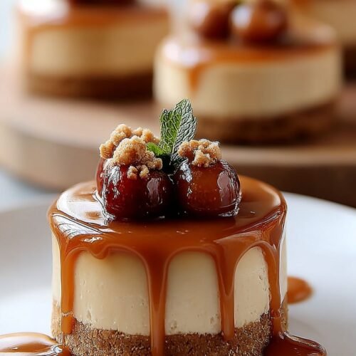 These mini caramel cheesecakes are like little bites of pure joy. I still remember the first time I made them — my kitchen smelled like a candy shop, and I may or may not have licked the spoon (no regrets). We’re talking about a creamy, homemade cheesecake that’s small enough to pop into your mouth but bold enough to make you sigh with happiness. I use this as my go-to when I want to impress without putting in a full-day shift in the kitchen. They’re portable, easy to share (if you’re generous), and let’s be honest — the swirl of caramel on top makes them look like you bought them from a fancy bakery. Whether you’re into healthy cheesecake recipes or on the hunt for the perfect cupcake recipe, these minis tick all the boxes. They’ve even won over my friend who swears by her vegan cheesecake recipes — though I caught her going back for seconds. Whip up a batch for your next get-together, or just keep them in your fridge like I do. Oh, and if you’re a fan of caramel apple dump cake, you’re really in for a treat. These cheesecakes are your new dessert habit waiting to happen.