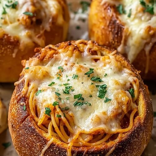 There’s something undeniably comforting about garlic bread. It’s warm, crisp on the outside, soft inside, and packed with garlicky goodness. Now imagine scooping cheesy spaghetti into a buttery, toasty bread bowl—yep, it’s as amazing as it sounds. I first made these on a rainy Thursday when I needed dinner to be both comforting and fun. My kids devoured them before I could blink, and I’ve made them a dozen times since. This is one of those easy dinner recipes that doesn’t ask for much but gives you everything—flavor, satisfaction, and maybe a little nostalgia. You can even let everyone build their own bowl at the table. It’s messy in the best way. Whether you’re craving homemade pasta recipes or just want something a little outside the spaghetti norm, this hits the spot. It pairs that rich tomato sauce with garlicky Portuguese rolls and a blanket of gooey cheese. If you’re into cheesy chicken recipes or easy pasta recipes, keep this one on standby. And if you’re like me and obsessed with my recipes and easy bread recipes, this one’s going right on your fridge.
