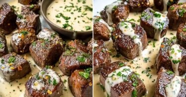 Clams In White Wine Garlic Sauce With Garlic Butter Steak Bites