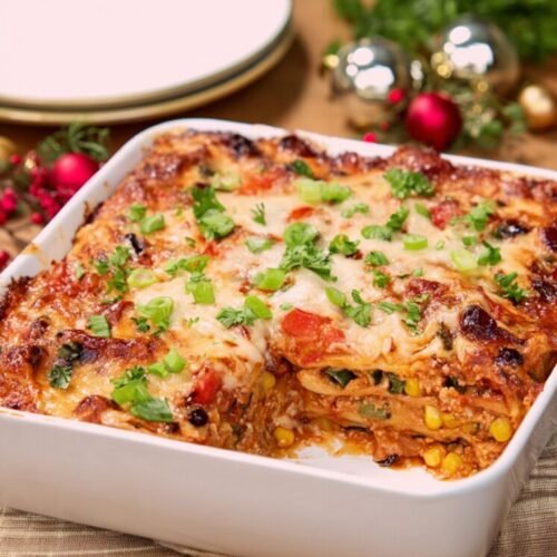 Let’s be real: we all have those days when cooking dinner feels like solving a Rubik’s cube—blindfolded. That’s where this Veggie Mexican Lasagna comes in. It’s colorful, hearty, and stacked with so many good-for-you ingredients, you might forget it’s technically a lasagna. I love that it pulls double duty: comforting like your favorite Italian bake, but zesty and bold like a fiesta on a plate. What makes this one a keeper? Well, besides being an easy dinner recipe that won’t leave your kitchen looking like a war zone, it fits right into your weekly dinner rotation. You’ve got layers of saucy beans, roasted veggies, tortillas, and cheese, all baked into one bubbly dish that practically screams, “Let’s do leftovers tomorrow.” This one ticks all the right boxes. It’s one of those easy Mexican recipes that looks way fancier than it is. Perfect for vegetarians, picky eaters, or anyone who’s just tired of pasta night. I like making it when I need a break from the usual suspects but still want big flavor. If you’re on the hunt for new recipes for dinner, this one’s about to be your go-to. Let’s cook.